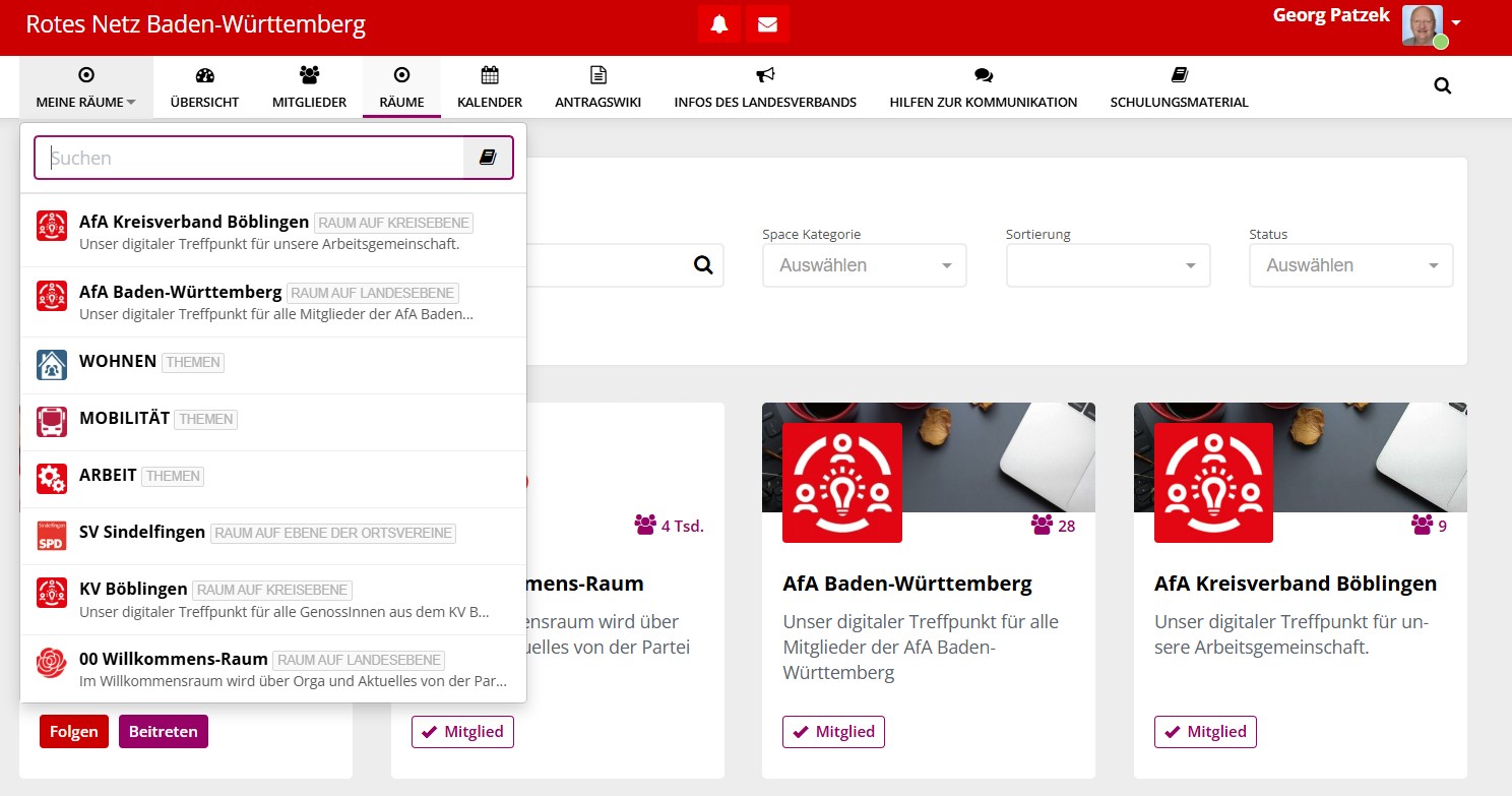 Im Roten Netz gibt es einen eigenen „Raum“ für die AfA im Kreisverband Böblingen sowie einen weiteren für den AfA-Landesverband. Dort findet ihr Termine, könnt Themen einbringen und Informationen abrufen. Wenn mir Neuigkeiten aus der Landes-AfA oder relevante Themen des DGB auf Kreisebene vorliegen, stelle ich sie dort ebenfalls ein.